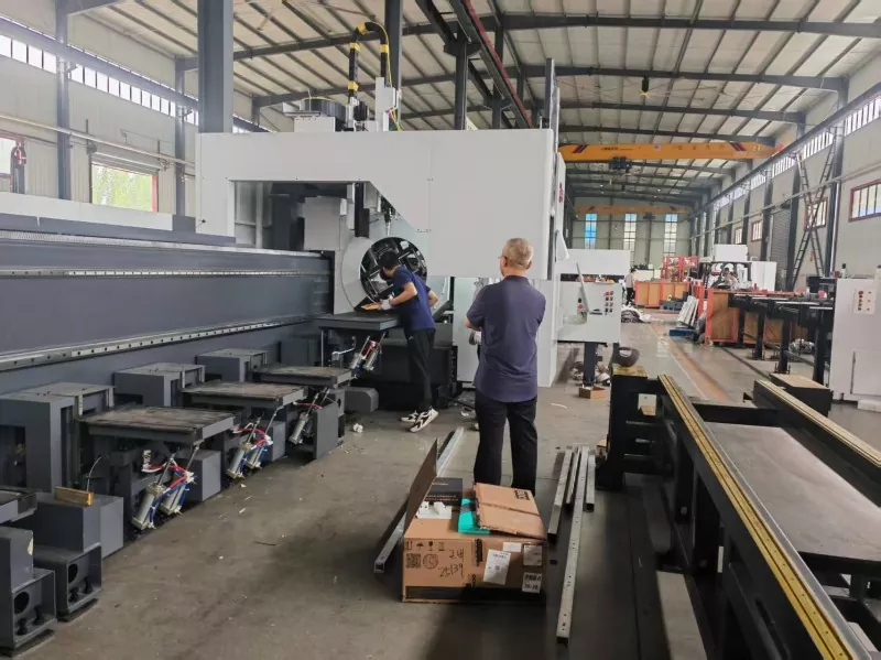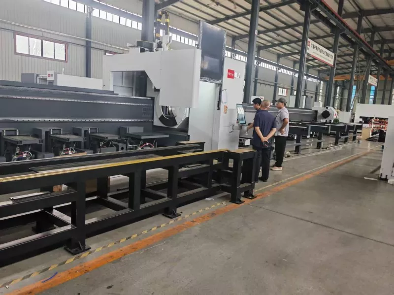 1. juni 2025 kom lederne for Qingdao Liweiyuan til Shandong Jinan Dingdian CNC Equipment Co., Ltd. for å gjennomføre en inspeksjon på stedet av det nyutstilte laserrøret på stedet. Forstå ytelsen, driften og tekniske fordelene med utstyret, fremmet denne inspeksjonen ikke bare oppgradering av produksjonsteknologiinnovasjon og utstyr for selskapets stålstrukturprodukter, men også injisert nytt fart i utviklingen av selskapet vårt.
